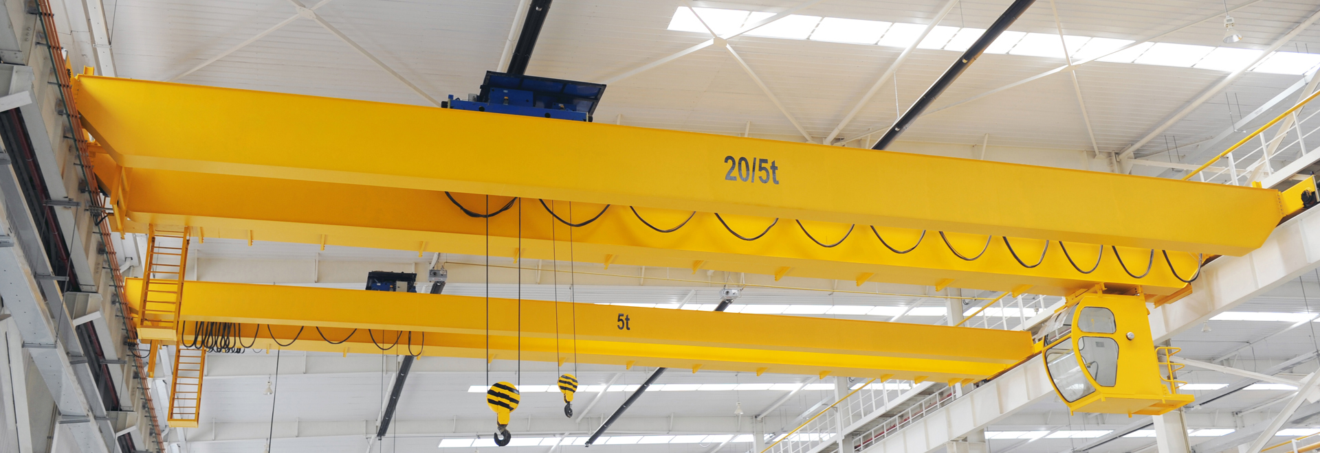 橋式起重機(jī)是橫架于車間、倉(cāng)庫(kù)和料場(chǎng)上空進(jìn)行物料吊運(yùn)的起重設(shè)備。由于它的兩端坐落在高大的水泥柱或者金屬